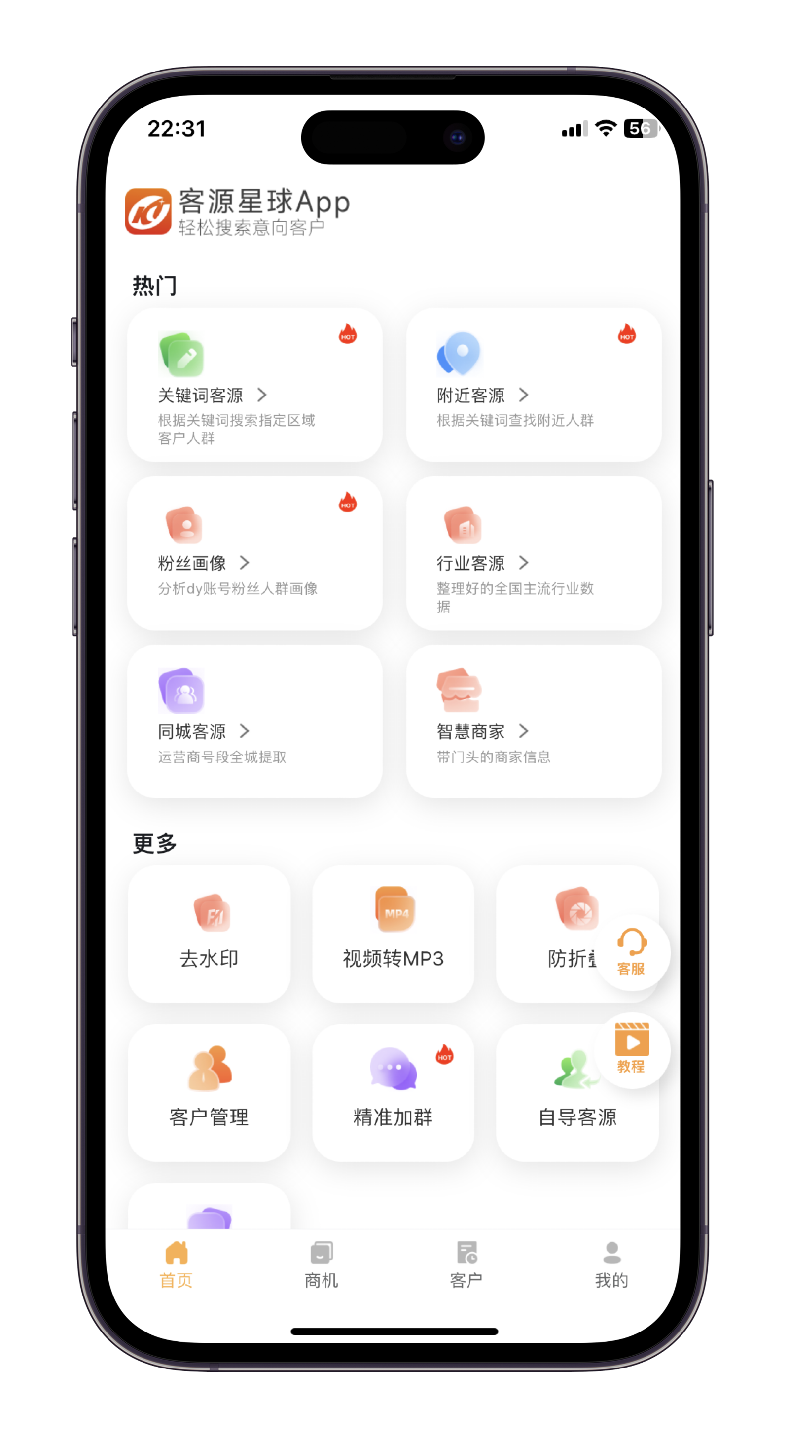 支持 iPhone 5s 及以上系统,专注于提供全国各行业的客源信息挖掘,已经成为全国各行业业务员和老板们的找客户拓客神器,为各行业的老板、批发商、经销商、渠道商、销售人员提供精准客源服务